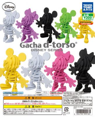 立体造形商品 d-torso(ディー・トルソー)の製造・販売を行う、株式会社アキ工作社 ( 大分県国東市、以下「アキ工作社」) と、玩具・カプセルトイ等の製造・販売を行う、株式会社タカラトミーアーツ ( 東京都、以下「タカラトミーアーツ」) のコラボレーションにより、d-torso のカプセルトイ、Gacha d-torso Disney Series(ガチャ ディートルソー ディズニーシリーズ) を製作し、2013 年3 月から全国発売いたします。