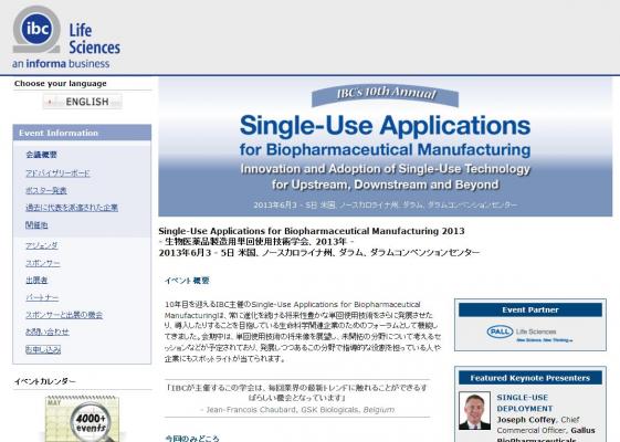 株式会社グローバル インフォメーションでは、皆様の利便性を図る為に、日本語、韓国語、中国語で「Single-Use Applications for Biopharmaceutical Manufacturing 2013 -生物医薬品製造用単回使用技術学会、2013年」の情報を提供するとともに、学会の参加のお申し込みを承っております。