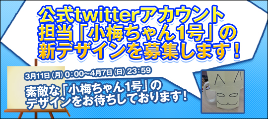 ■公式twitterアカウント担当「小梅ちゃん1号」の新デザインを募集します!