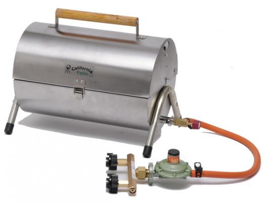 カリフォルニアパティオの「ハンディ SS Tank」は、片手で持ち運べるコンパクトなBBQグリル。何かと荷物が多いオートキャンプで、このコンパクトさは助かります。