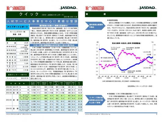 完全失業率が2009年7月の5.5%(過去最悪)をピークに低下傾向へ転じ,有効求人倍率も同7月の0.43倍(過去最低)をボトムに上昇傾向をたどるなか,業績は順調な回復途上にある。12年3月期の連結業績は・・・