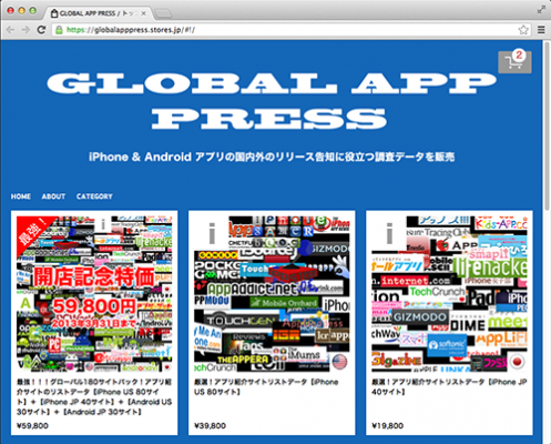 開店時のラインナップとしては、国内外約180のiPhone&Androidアプリ紹介サイトに関するリストデータを用意しています。アプリ開発者は、これらのデータを活用することで、効率よくスピーディーに各サイトへのレビュー依頼を完了することが可能になります。「GLOBAL APP PRESS」では、引き続きアプリ開発者にとって、魅力的な商品ラインナップの拡充を図って参ります。