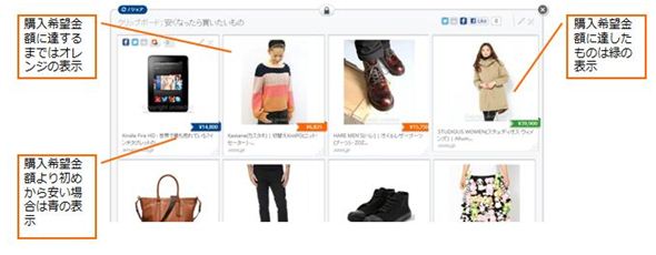 Clipixで、欲しい商品をクリップし、買いたい金額を設定し、後は待つだけ。希望価格になった瞬間に、メールでお知らせ(プライスドロップアラート機能)してくれて買い時を逃しません。 (「プライスドロップアラート機能」は、現在特許出願中)