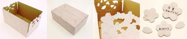 新デザインのお届け箱の名称は「さくら箱」です。日本の春の象徴“桜”の繊細な華やかさを表現するため、水彩画タッチの桜の花びらをちりばめたデザインとなっています。さらに内フラップを、桜の花型に切り抜いています。この部分を切り取ってオーナメントやメッセージカードに利用することができ、箱のリユースが楽しめるようになっています。
