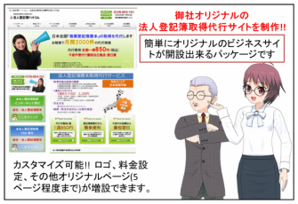 法人(商業)登記簿の取得代行サイトである「法人登記簿ドットコム(URL http://www.houjintoukibo.com )」と同等のサービスサイトを、カスタマイズ(ロゴ、会社概要、価格等を変更)して、納品させて頂き、サイト運営して頂きます。実際に法務局で登記簿取得する実費(通常700円+人件費・交通費等)と、法務局に専用アカウントを作成して、登記簿を取得する場合の差額数百円~数千円の差額を収益化するビジネスモデルとなります。