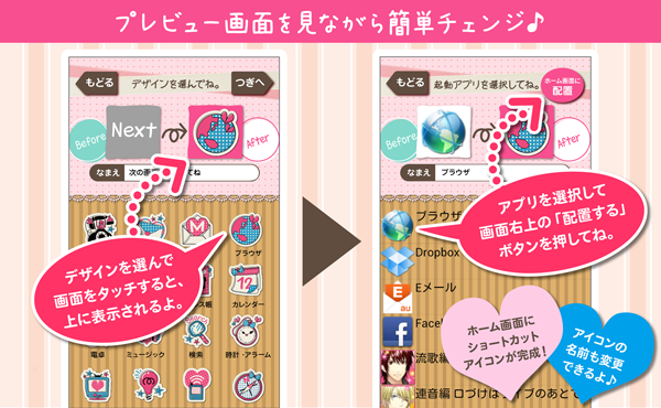 便利なBefore・After画面を見ながら簡単に作れるので、スマホデビューしたての女子にもオススメです♪