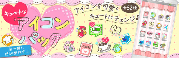 スマホを可愛くおしゃれに使いたい!そんなスマホ女子のために、早くもアイコンシリーズ第二弾「ラブリーなアイコン」を配信開始♪アイコンの数はなんと52種類!