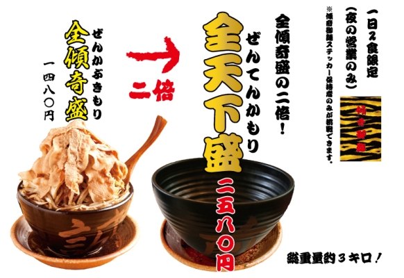 そこで、全傾奇盛の2倍の量になる、『全天下盛』をメニューとして開発しました。