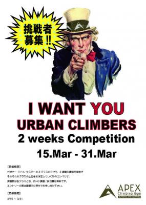 東京都新宿区四谷三丁目のボルダリングジム【エイペックスクライミングジム】(運営:株式会社APEX SOLUTIONS)は、オープン後、初のボルダリングコンペを3/15~31の半月の期間で開催しています。