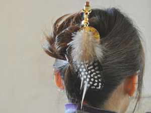 “かんざし”というとおごそかな和服のイメージがありますが、「fugue(フーガ)」の「木と羽のかんざし」は普段使いも出来るカジュアルなデザインです。