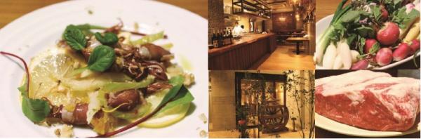 (1) 料理は国産の良質な素材にこだわり、素材の味を活かした調理法でレストランと変わらないクオリティー、アイデアとセンスを盛り込み、旬の野菜や魚介、肉は北海道の子羊や香川県の鎌田牛、秋田の比内地鶏など、入荷の部位によって調理法を変え、羊の生ハムや干し肉、真空調理や炭火焼で御用意、賑わう憩いの食事を演出致します。