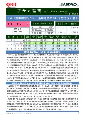(6)内容:「1Qは営業減益ながら,通期増益のQBR予想を据え置き」