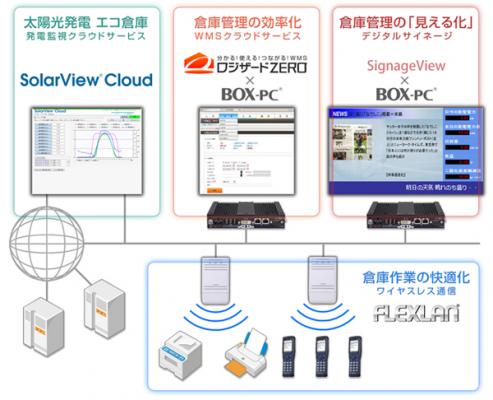 ロジザード社が開発した業界初の初期費用0円多言語対応のクラウド型WMS 「ロジザードゼロ(R)」とコンテックが提供する業務用無線LAN機器「FLEXLAN(R)」による高品質でフレキシブルな通信インフラの構築、デジタルサイ ネージシステムによる現場の見える化・安全意識の啓発、製造実行システム(MES)による販売管理・生産管理システムとの連携、そして、倉庫の屋根などに 設置された太陽光発電設備の計測表示システムまで、ロジスティクスにとどまらない様々なソリューションで、WMSに新たな付加価値を創造しお客様に最適な 物流システムを提供します。