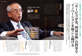 ヤマトホールディングス株式会社(東証1部:9064)代表取締役会長の瀬戸薫氏のインタビューから始まり、“人を活かす経営”“売上を上げるプロフェッショナル””編集部注目の新サービス”の特集を含む、計18社のインタビューが掲載されている。