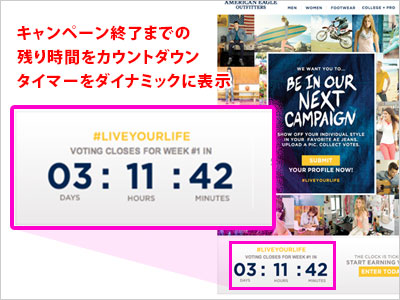 たとえば“キャンペーン終了まであと○○分○○秒”というタイマー表示がHTMLメールのコンテンツ内で行えます。メールを開封した際に、期限までの最新の残り日数や時間を視認させられ、期間限定キャンペーンの後押しに有効です。
