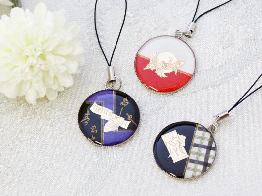 今回発売されるストラップは全22種類。4月から6月にこけら落とし公演として興行される21演目をテーマにしたものと、リニューアル後の歌舞伎座をデザインしたものです。和紙や繊細な金属パーツをガラスのように透明な樹脂に封入しており、一点一点が職人による手作りです。