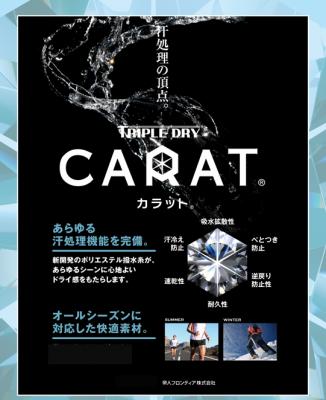 「CARAT(R)」はあらゆる汗処理機能を完備し、オールシーズンに対応した快適素材。この素材を起用しての商品化は当社が初となります。