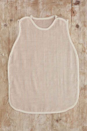スリーパーは赤ちゃんが寝る時に使う「身につける寝具」の役割を果たし、寝相が悪い赤ちゃんでもお腹がはだけることないゆったりサイズで、安心してご着用いただけます。メイド・イン・アースのガーゼスリーパーは、甘めの織りのガーゼ生地を2枚重ねたダブルガーゼ生地でできており、前後のガーゼを上下左右8つのスナップで留めて着用します。ガーゼ生地や生地の縁をくるむバインダーのみならず、縫製糸やネームタグに至るまで、すべて純オーガニックコットン100%でつくっています。お腹部分と背中部分、それぞれ完全に2枚に分かれるので、新生児でもふとんの上に寝かせるようにしてカラダをはさみこんでスナップで留めれば、全身すっぽりくるまります。