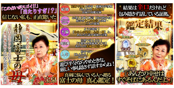 ・アプリ名称:【鬼当り占い】東海辛口鑑定『静岡富士の母』