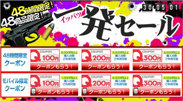 「48時間限定!48商品限定!一発セール」では過去最高レベルの1,200円分クーポン大量発行