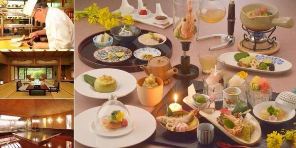 天然温泉古奈の湯を楽しんだ後は、落ち着いた雰囲気の個室でお過ごしください。夕食は、全国技能士会連合会「全技連マイスター」認定の江後料理長が監修したこだわりの懐石料理。お肉と海の幸の2種のメインはそれぞれお好きなものをお選びいただけます。