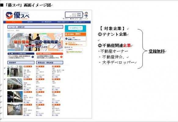 オフィス・店舗物件BtoBマッチングサイト「優スペ」進捗について 株式会社フィナンシャルギャランティ(東京都港区 代表取締役社長:豊岡 順也、以下「当社」)が運営する、2013年1月15日サービス開始の会員制不動産マッチングサイト「優スペ※1」の2013年3月末での会員数等についての進捗を以下のとおり