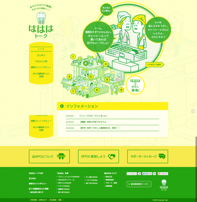 リスク評価に基づく口腔予防を行う事により、一生にわたり健康な口腔内を維持することをより広く一般の方へ知らしめるというNPO法人 最先端のむし歯・歯周病予防を要求する会 様の目的に沿い、株式会社ファーストタッチ(東京都渋谷区、代表取締役 清水孝綱)企画・監修のもと、今までのイメージを一新するクリエイティブチェンジを実行いたしました。イラストレーターにYAGI氏を迎え、「はははトーク」という日常の会話の中で口腔予防の大切さを伝えるコンテンツを展開、また、デザインにギャグテイストを取り入れることで、より身近で親しみやすいコンテンツを提供出来るサイトとなっております。