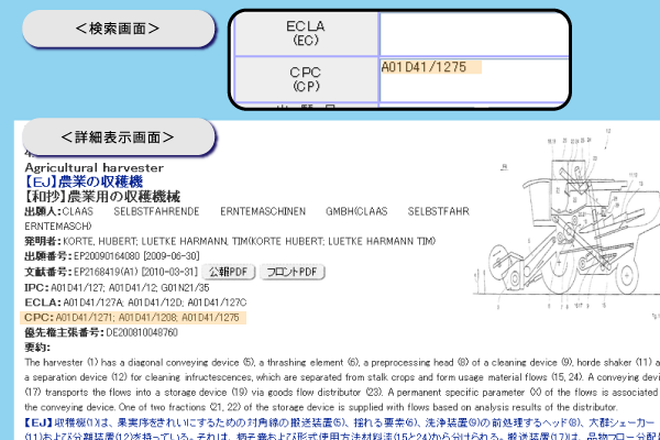 欧州特許庁(EPO)と米国特許商標庁(USPTO)が導入した共通の特許分類、CPCによる検索とその表示ができるようになります。
