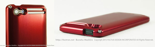 ジュラルミン(アルミ合金)を削り出したフルカバーのiPhone5用ジャケット。金属なのにしっとりと手になじむ、やわらかいカーブに仕上げました。