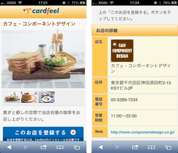 探した店舗を紹介する画面(htmlページ)は、Cardfeelのスマホサイト(Web)にも掲載しています。