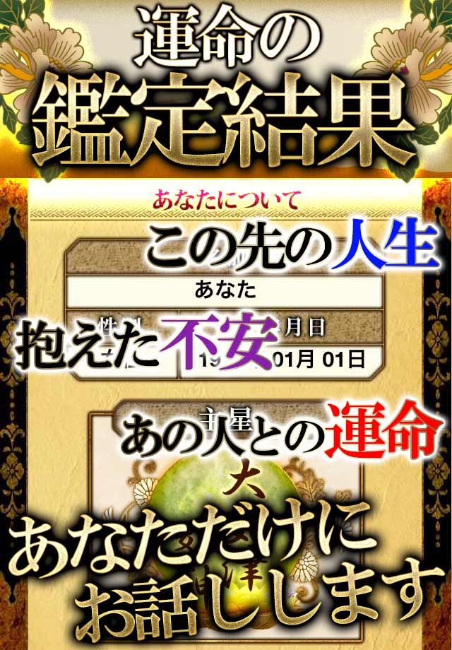 本アプリは川崎で当たると話題の口コミno.1占い師「伽鳳」が算命学の基礎を元に独自の理論で体系づけた鑑定法「伽鳳算命占」を用いた占いアプリです。