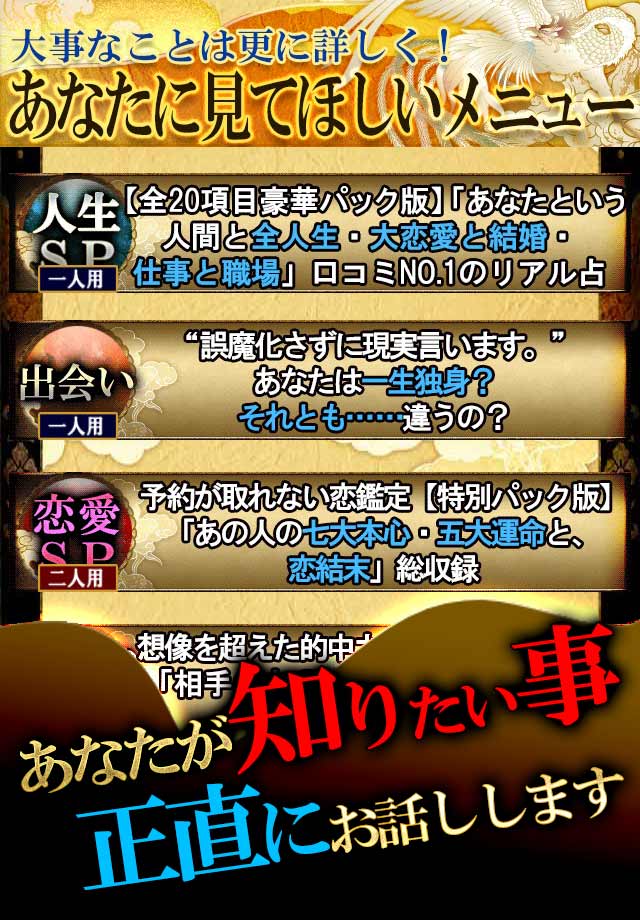 【全20項目豪華パック版】「あなたという人間と全人生・大恋愛と結婚・仕事と職場」口コミNO.1のリアル占