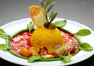島の玄関口・土庄港に設置される、小豆島の象徴「オリーブ」をモチーフにしたオブジェ、崔正化(チェ・ジョンファ)作「太陽の贈り物」をアレンジしたホテルオリジナルのカレーです。食欲をそそる少し辛口です。