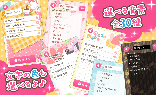 忘れそうなことも、可愛いメモ帳でキューティに管理★買いたい物や、今週やること、思いついたこと…何でもその場で簡単メモできます!