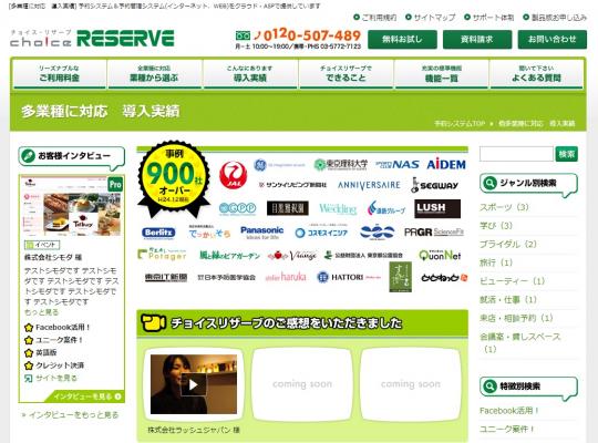 ■クラウド型ネット予約管理システム「Choice RESERVE」製品サイトの「導入実績」