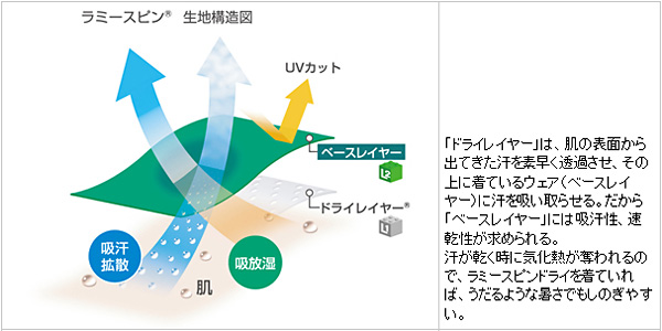素肌に着る「ドライレイヤー」は、肌表面の汗を素早く透過して、汗を肌から引き離すのが役割。で、その汗はどうなるのか?