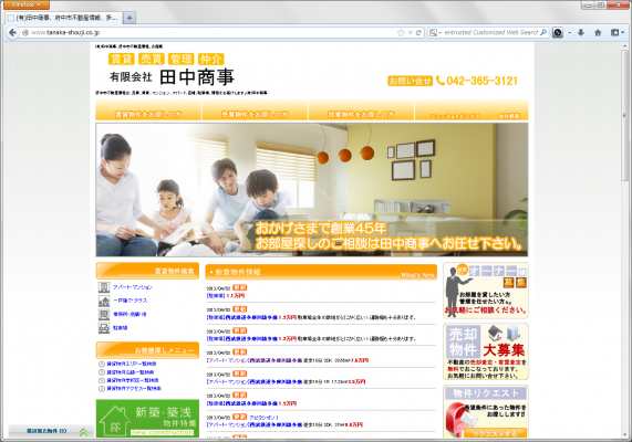 今回リニューアルした「田中商事」は、府中市、多磨駅周辺の賃貸マンション~新築中古戸建て分譲住宅~マンション、土地まで、幅広く取り扱う老舗の不動産専用ウェブサイトです。