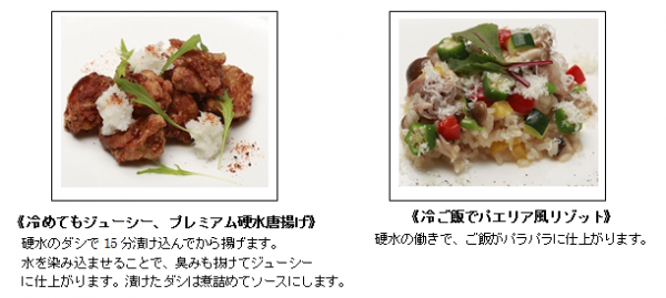 そして今回、レストラン「代官山タツヤ・カワゴエ」料理長とのコラボレーションが実現。同レストランの料理長・安藤曜磁氏が、プレミアム硬水ならではの特性を生かし、料理の味を引き立てるメニューを考案、レシピ化していくことになりました。