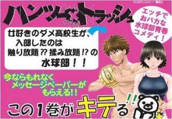 第九弾となる今回の銘柄は、講談社「ヤングマガジン」で連載中の「ハンツー×トラッシュ」(こばやしひよこ)です。コミックの題材としては珍しい水球部を舞台にした、煩悩にまみれた高校1年生の主人公・浜路(ハマジ)がエッチなハプニングを巻き起こしながらも成長していく学園青春コミックです。「『水球』に『下心』を加えました」のキャッチフレーズで店頭を席巻しています。日販は、第2巻の発売にあわせてフェアを展開し、第1巻・第2巻の購入者特典として、著者書き下ろしメッセージペーパー、店頭オリジナルPOP、販促動画DVD(希望店のみ)を展開書店へ提供することで、書店店頭から「今、この作品がキテる!」事実を強力に訴求し、第1巻の更なる売り伸ばしを図ります。