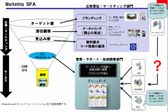 ■Marketing&SAFは従来分離していた、マーケティングリードと営業活動を効率的に統合。これによりマスメディアによる顧客情報(リード)の取得からSalesforceによる顧客マネジメントまで一貫した戦略の実施が可能になります。さらにSalesforceによる膨大な入力情報を分析することにより業務も改善します。