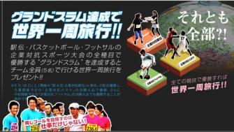 この3種目全てで優勝するグランドスラムを達成すると世界一周旅行(5名分)をプレゼントというキャンペーンを実施しており、挑戦チームを募集しています。