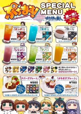 壁一面・天井・テーブルまでもぷちどるに囲まれたコラボルームと店内装飾のインパクトもさることながら、コースターやランチョンマットなど、限定ノベルティーが貰えるサービスが満載です!