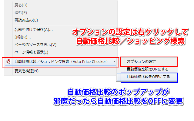 「自動価格比較(Auto Price Checker)」は主要ショッピングサイト/価格比較サイトの商品ページにアクセスすると自動的に他のショッピングサイトの情報を取得し、安い順に表示します。