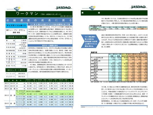 13/3期3Q累計業績(4-12月)は,フランチャイズ店舗への転換が進んだ影響により(直営店舗売上高が減少)営業総収入は+4.1%と低い伸びになったが,営業利益は+13.7%と二桁増益を達成した。4Q(2013年1-3月)は・・・