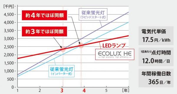 通常蛍光灯タイプのLEDは3~4年で元が取れると言います。しかしさらにセンサータイプにすることでもっと短くなることもあります。