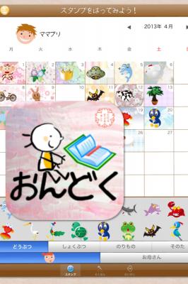 「おんどく!~ママとぼくの音読カレンダー」は、音読を通じた母親と子どもとのコミュニケーションツールとなるアプリ。子どもが音読した音声をアプリ上に録音し、時間のあるときに聴いたり、成長の記録として残しておくことができる。また子ども一人ひとりにスタンプカードが用意されており、母親が背景の絵柄を選び、子どもが好きなスタンプを押していくことで、音読に対する子どものモチベーションを高めることができる。