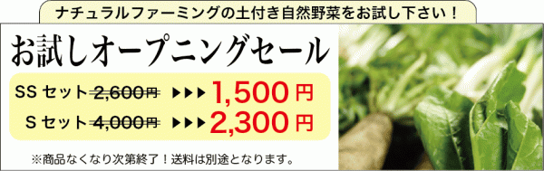 土付き野菜専門店・自然農園ナチュラルファーミングでは、肥料も水も与えない、自然の力だけで育ったかわいい野菜たちを存分にお試し下さい。体にいい、かわいくて美味しい野菜です。