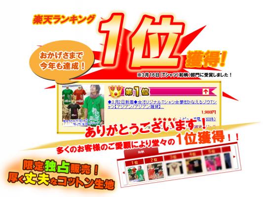 ・毎年3月~7月の間は常に楽天市場やYahooショッピングモールのランキングに入賞するデザインTシャツです。