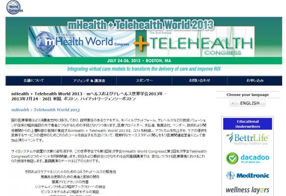 学会:「mHealth + Telehealth World 2013 -mヘルスおよびテレヘルス世界学会」