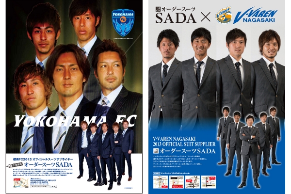 株式会社佐田は、上記チームにベガルタ仙台、モンテディオ山形を加えた、Jリーグ10チーム、プロ野球の千葉ロッテマリーンズとオフィシャルスーツサプライヤー契約を結んでおり、オフィシャルスーツサプライヤーを自称する権利、団体肖像権の使用権、スタジアムでの販売会を行う権利などを得ております。この度、2013年シーズンモデルが完成いたしましたJリーグ8チームのオフィシャルオーダースーツの販売を、当社が運営する全国の「工場直販オーダースーツSADA」19店舗、オーダースーツSADAのネットショップにて販売を開始いたします。